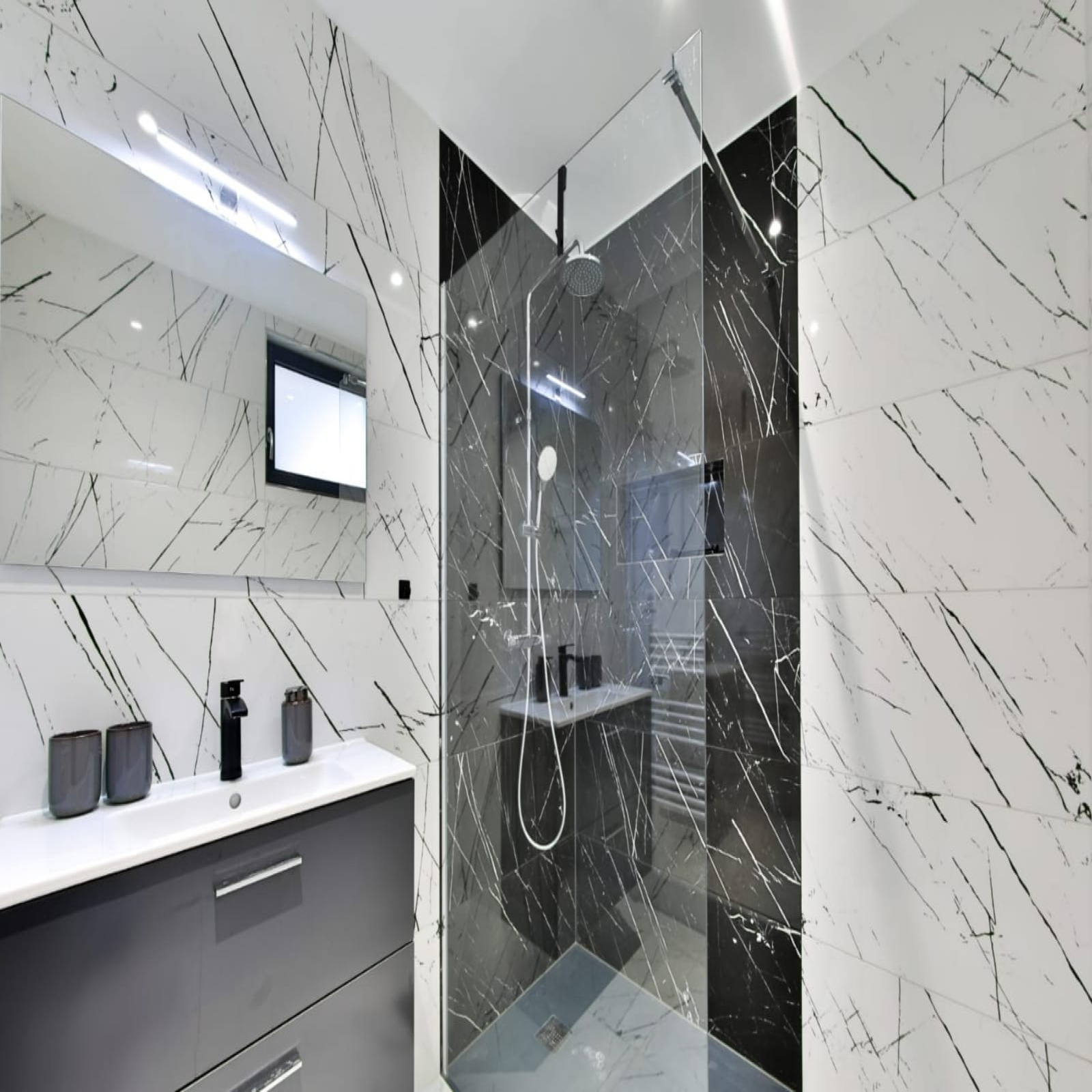 - Salle de bain avec douche et baignoire