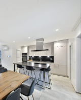 - Cuisine équipée contemporaine avec îlot central et cellier
