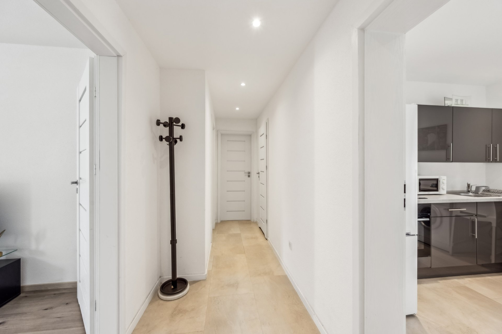 L'appartement du rez-de-chaussée surélevé comprend 3 pièces, une cuisine, une salle de bains, un balcon et une loggia, pour une superficie d'environ 83 m². L'appartement du 1er étage, également composé de 3 pièces, d'une cuisine, d'une salle de bains et d'une loggia, offre une superficie d'environ 87 m². Un appartement de quatre pièces (cuisine, salle de bains et WC séparés) d'environ 92 m² est situé au deuxième étage.