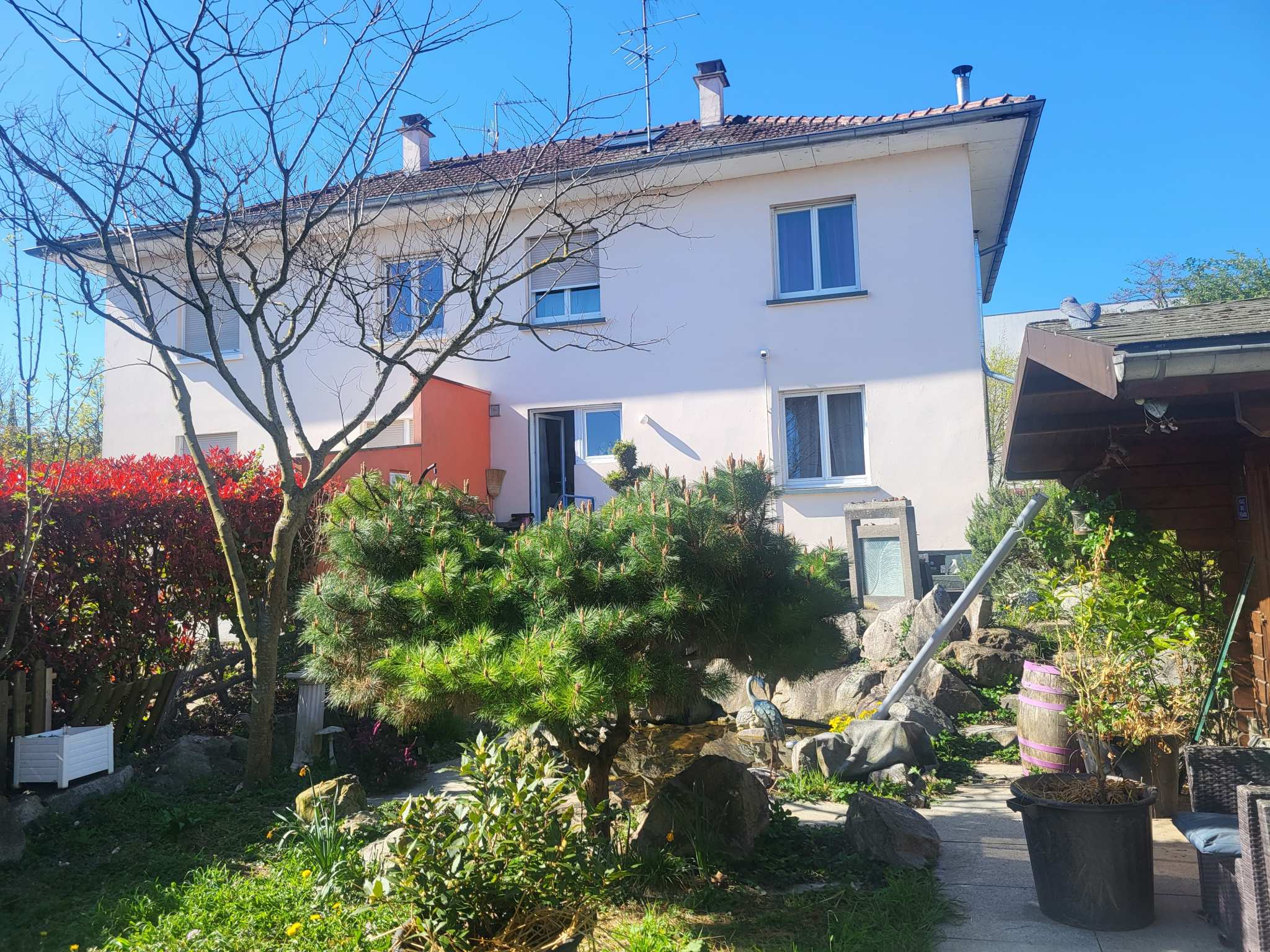 Proposons cette charmante maison de 108 m2 habitables, située à proximité du tram 3, du collège, du lycée. Elle est construite sur un terrain de 495 m2, arboré, avec bassins à poissons et chalet de jardin. La maison comprend l'entrée, un W.C., le salon, salle-à-manger avec parquet bois, poêle à bois, cuisine séparée avec accès au jardin. L'étage comporte trois chambres et une salle d'eau rénovée avec W.C., un escalier à pas japonnais vous emmène à une quatrième chambre. La maison est construite sur un sous-sol. Chauffage au gaz de ville et poêle à bois.